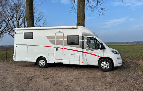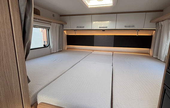 Onze Sunlight T67 A Citroën is een half-integraal camper, gebouwd op een Citroen chassis, die bekend staat om zijn praktische indeling met twee aparte bedden achterin en een hefbed, wat slaapplaatsen biedt voor vier personen. De camper heeft een ruime zitgroep, een keuken met 3-pits kookplaat, een koelkast met vriesvak, een gecombineerde toilet- en doucheruimte, en een grote garage voor bagage of fietsen.